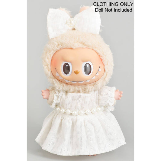 FLORAL DRESS AND BOW WITH PEARLS LABUBU OUTFIT: WHITE / 1 SIZE