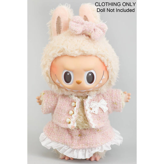 FANCY TWEED DRESS AND BOW LABUBU OUTFIT ONLY: WHITE / 1 SIZE