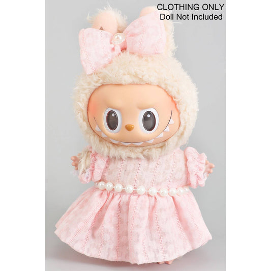CUTE DRESS AND BOW PIN LABUBU OUTFIT: PINK / 1 SIZE